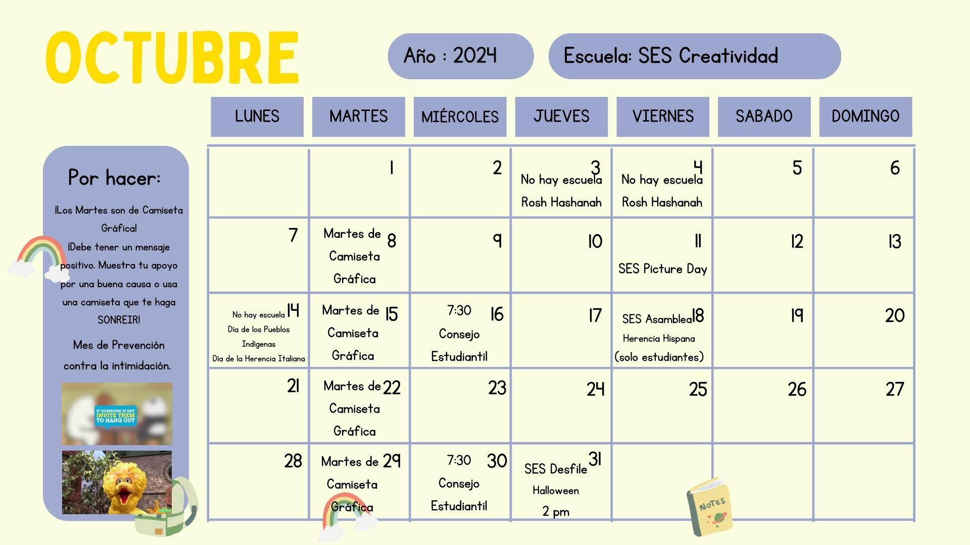 October Calendar / Calendario de Octubre