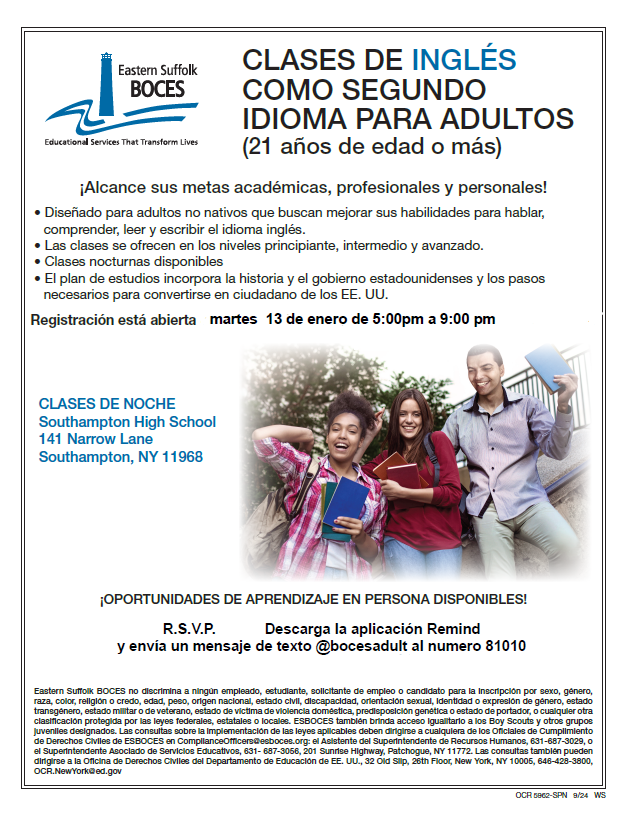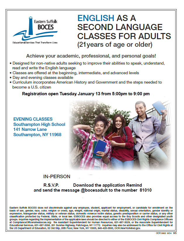 English as a Second Language for Adults (BOCES)