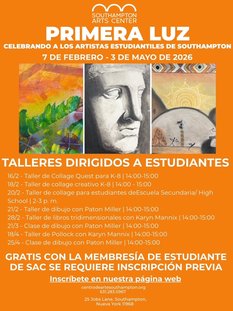 As part of our partnership with the Southampton Arts Center (SAC), we would like to share student workshops that will be available during the duration of the First Light Exhibition. Please see below for program details and registration information.