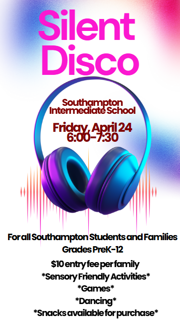 The Annual Silent Disco will be held on April 24th from 6:00-7:30 at SIS. We look forward to seeing you all there!
